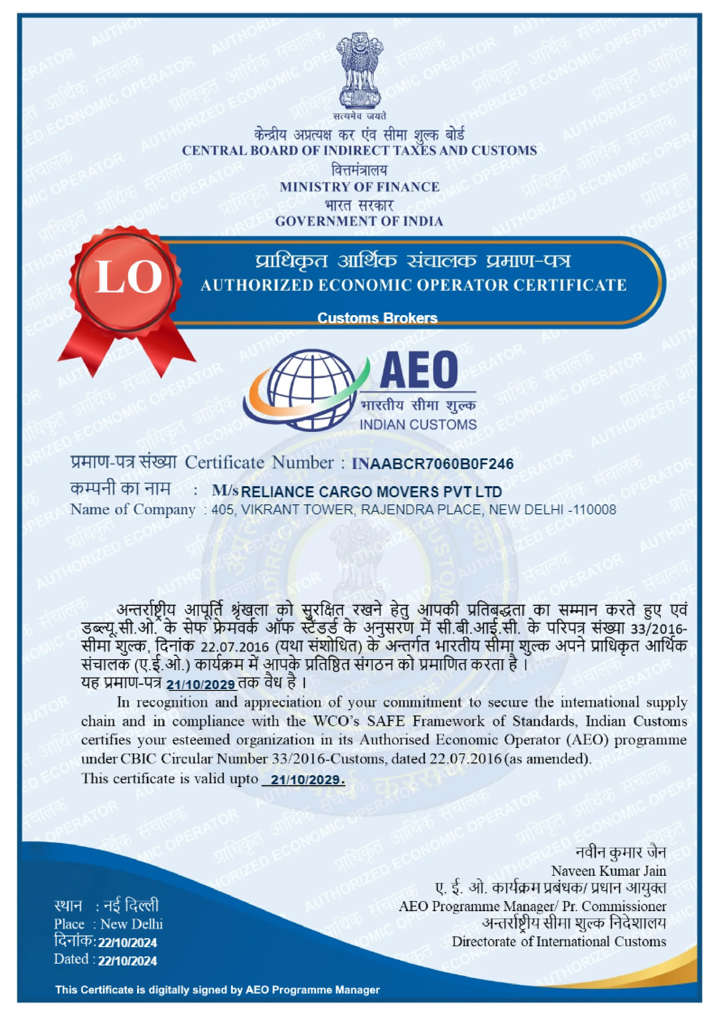 Mr Mukesh Kumar Sharma started this company nearly 40 years ago, transforming Reliance Cargo Movers Pvt. Ltd. into a Globally Recognized and trusted Supply Chain Firm. A man with a humble beginning, his pursuit of excellence and his razor -sharp vision enabled Reliance Cargo to serve global networks.